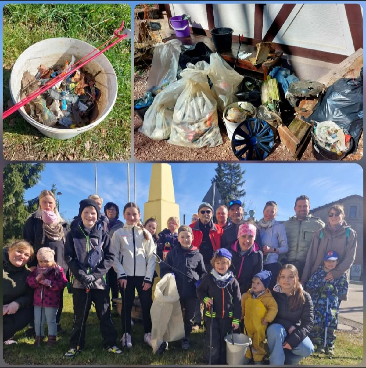 Bei bestem Wetter beteiligten sich zahlreiche engagierte Helferinnen und Helfer an der Aktion. Insgesamt waren über 20 Kinder und Erwachsene im Einsatz, um gemeinsam die Umgebung von achtlos weggeworfenem Müll zu befreien. Mit Eimern, Handschuhen und Greifzangen ausgestattet machten sich die Teilnehmenden motiviert ans Werk.