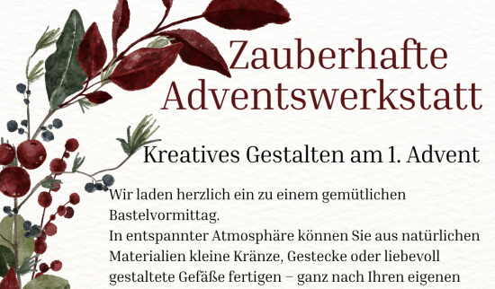 Wir laden zum gemütlichen Bastelvormittag am 1. Advent ein.