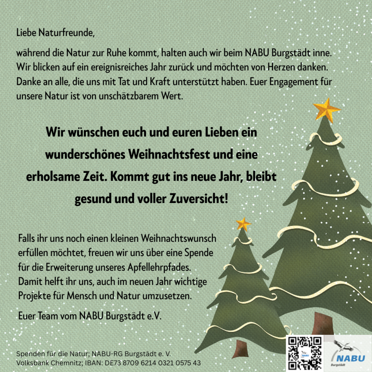 Der NABU Burgstädt e.V. wünscht Frohe Weihnachten und einen Guten Start ins Neue Jahr!